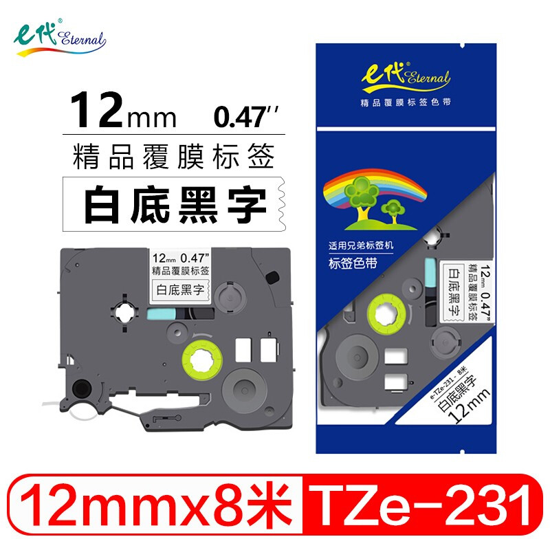 • e代(eternal)标签带 12mm标签纸色带 TZe-231 适用兄弟标签机色带 12mm白底黑字 TZe-231