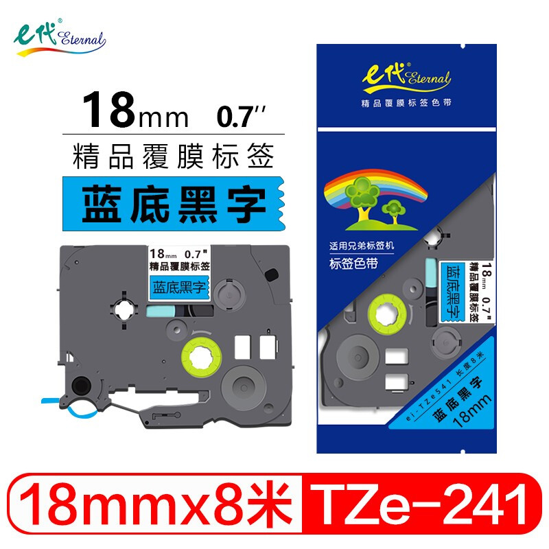 e代 18mm蓝底黑字标签色带 TZe541标签打印纸 适用兄弟标签机色带PT-E300 PT-18Rz PT-D450