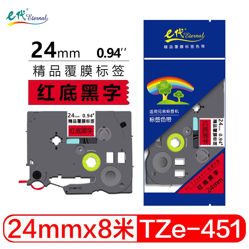 - e代 24mm红底黑字标签色带 TZe451标签打印纸 适用兄弟标签机色带PT-P700 PT-D600 PT-E550W PT-7600 PT-2730