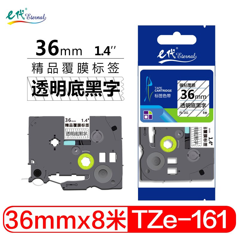 - e代 36mm透明底黑字标签色带 TZe161标签打印纸 适用兄弟标签机色带PT-9700PC PT-3600 PT-900 E800TK