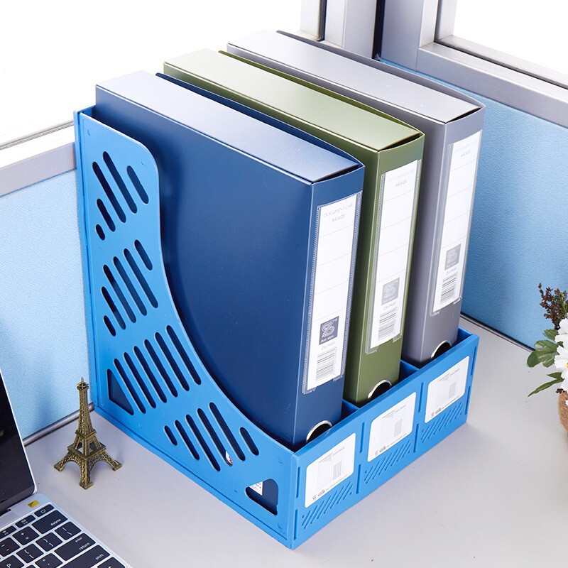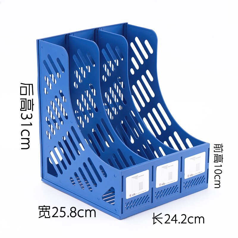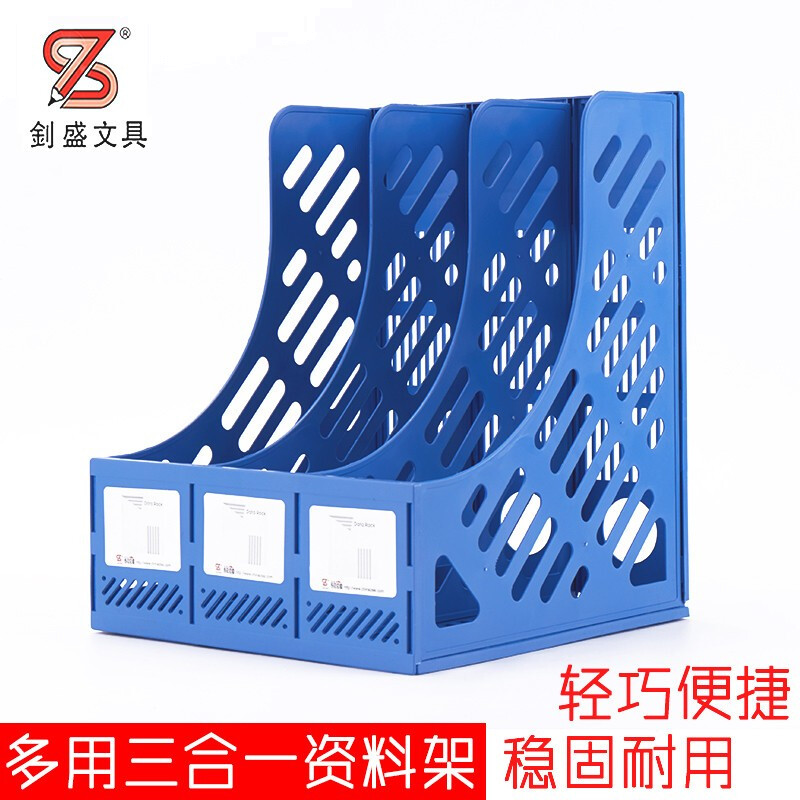 钊盛文具ZS-618文件架三联文件框资料收纳桌面文件栏 中蓝 ZS-618
