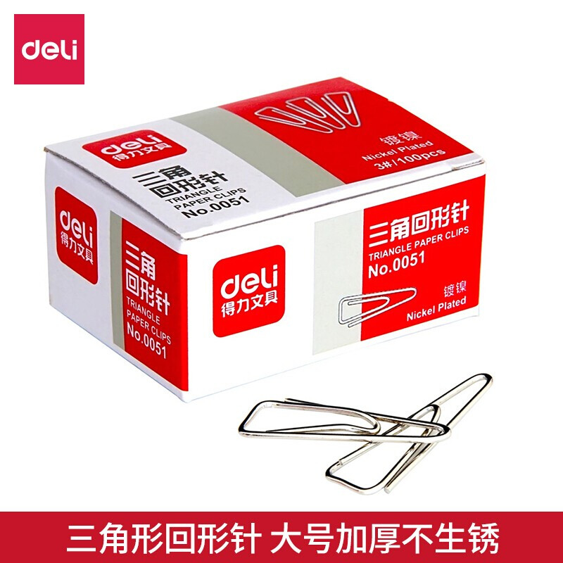 • 得力(deli) 0051三角回形针 全金属曲别针加厚电镀不易生锈 10盒装
