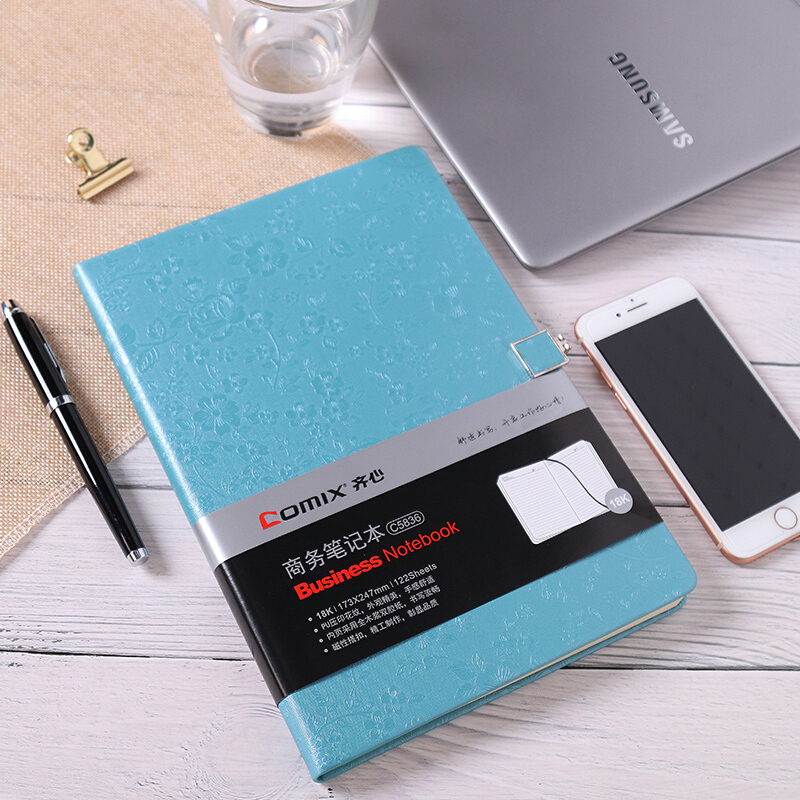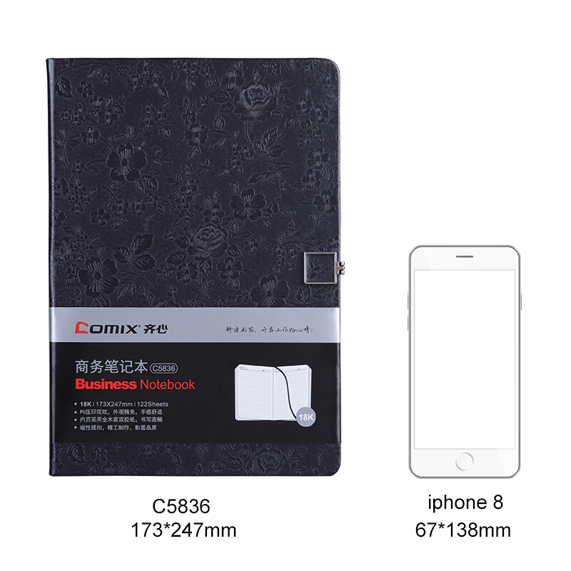 齐心(Comix)18K 122张 磁扣笔记本子/皮面记事本/日记本 花锦系列 酱紫 C5836