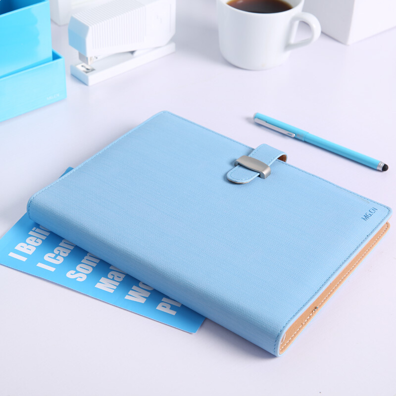 晨光(M&G)文具B5/80页蓝色学生皮面笔记本 插扣活页本皮革本 商务办公记事笔记本子 单本装APYG3811