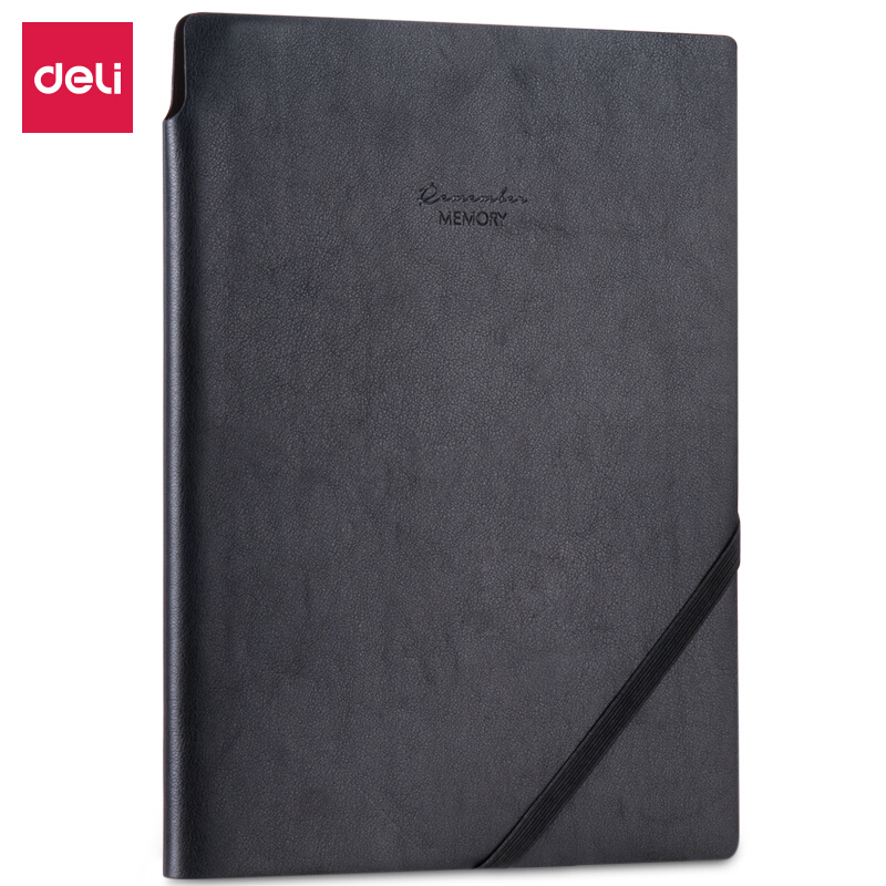 得力(deli)16k96张时尚绑带皮面本 可插笔商务记事本笔记本子文具办公用品 黑色22250