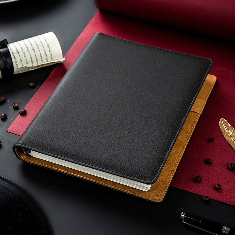得力(deli)16K100张大号精装活页笔记本子文具 商务记事本皮面本办公用品 黑色33048