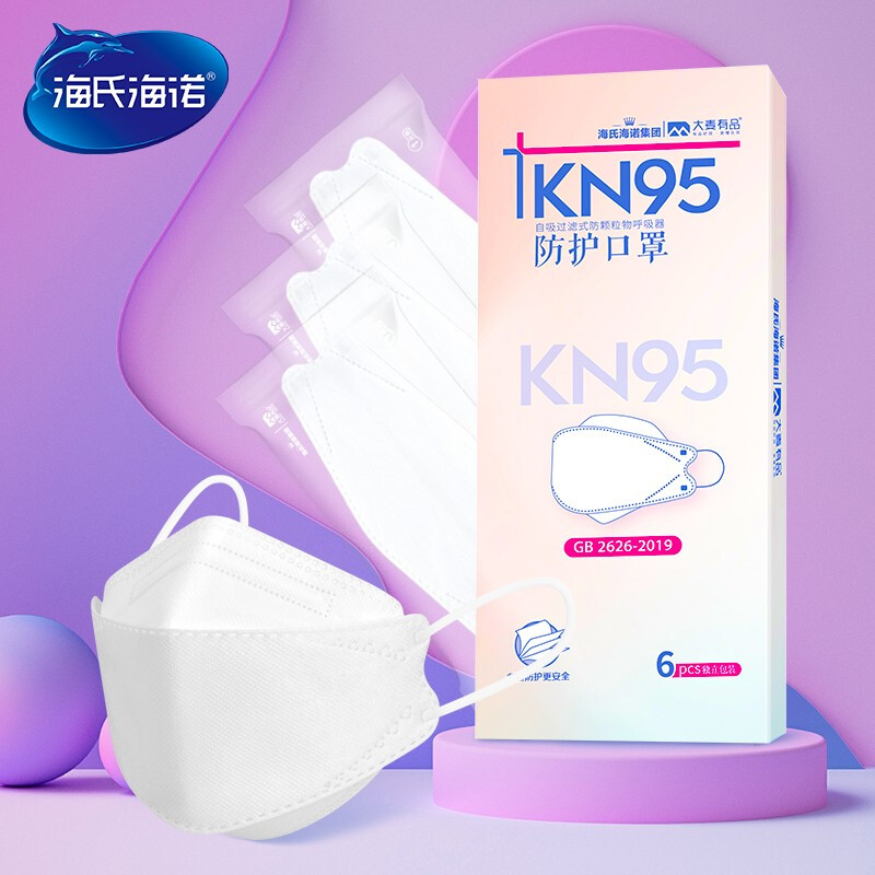 • 海氏海诺大麦 一次性kn95口罩 防尘无纺布防护成人口罩 柳叶型6只装独立包装 KN95口罩鱼嘴型白色