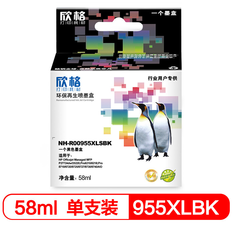 • 欣格NP-H-00955XLSBK 黑色墨盒 适用HP 27724 25220 8210 8218