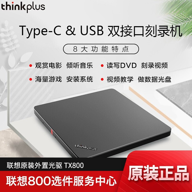 联想ThinkPad 笔记本台式机服务器外置光驱 USB接口DVD刻录机 原装超薄USB移动外接光驱 TX800