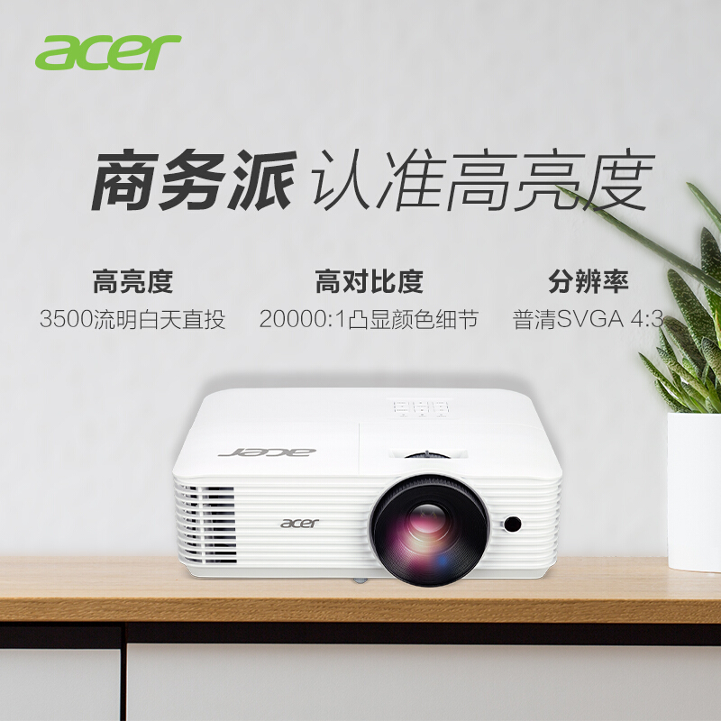 • 宏碁D606D 极光投影机 投影仪办公(普清SVGA 3500流明 标配HDMI 商用机皇升级 白天直投)