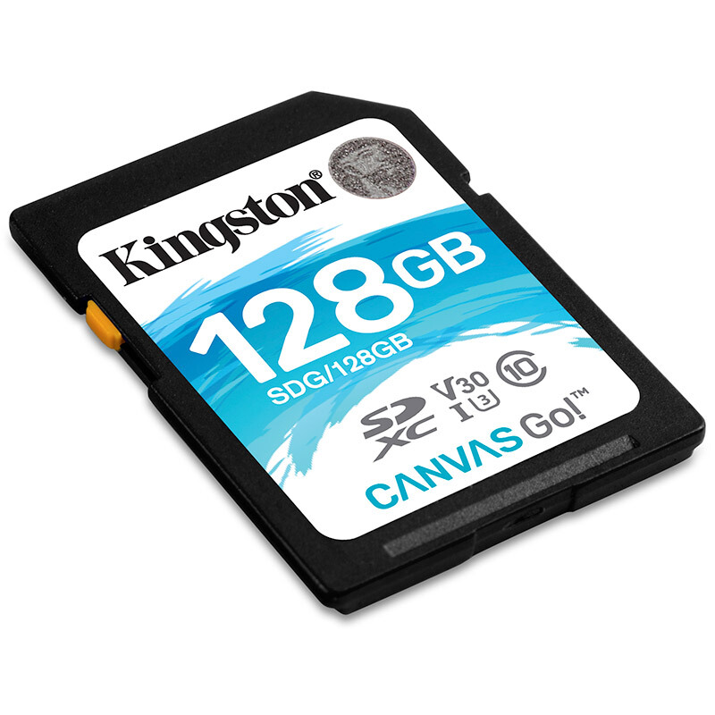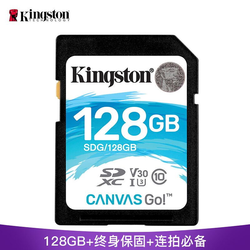 • 金士顿128G SD存储大卡微单内存卡 class10 U3 V30 128G(SDHC读取90M/s 写入45M/s)
