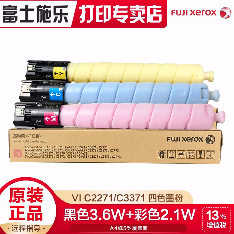 富士施乐2273粉盒耗材施乐2271/3370/3371/4471/5571原装墨粉硒鼓感光鼓 黑、红、兰、黄一套
