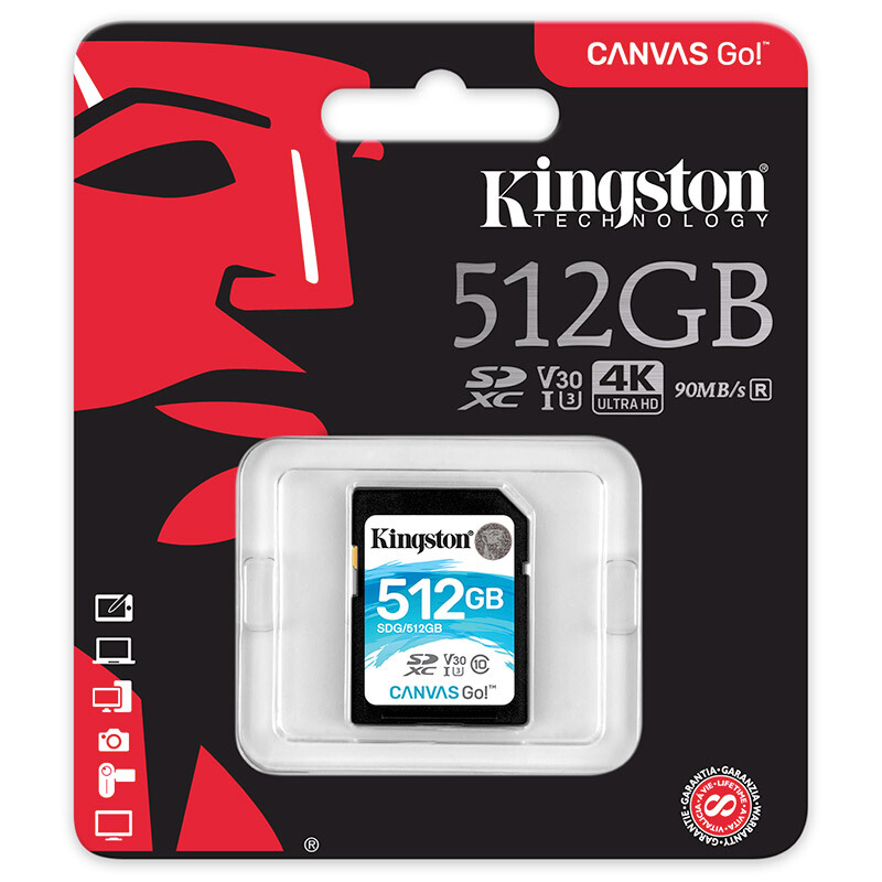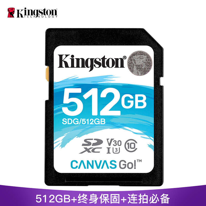 • 金士顿(Kingston)SD存储大卡 高速佳能相机单反微单内存卡 class10 U3 V30 512G(SDHC读取90M/s 写入45M/s)