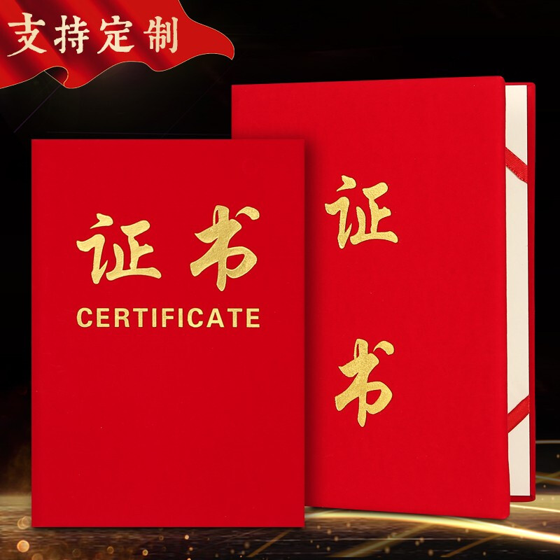• 大红绒面通用12K横字烫金证书 外壳封皮 配内页可打印 定制作企业团体logo颁奖表彰奖状荣誉证书订制