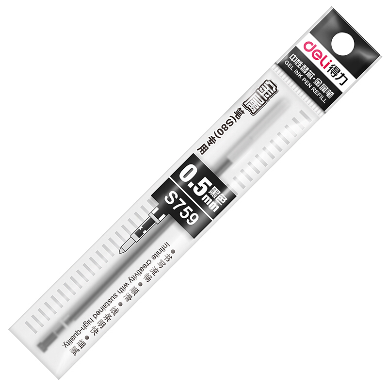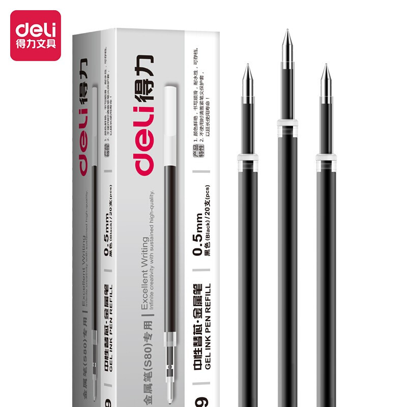 得力 (deli) S759 大容量0.5mm黑色中性笔笔芯 20支/盒 (计价单位:支)