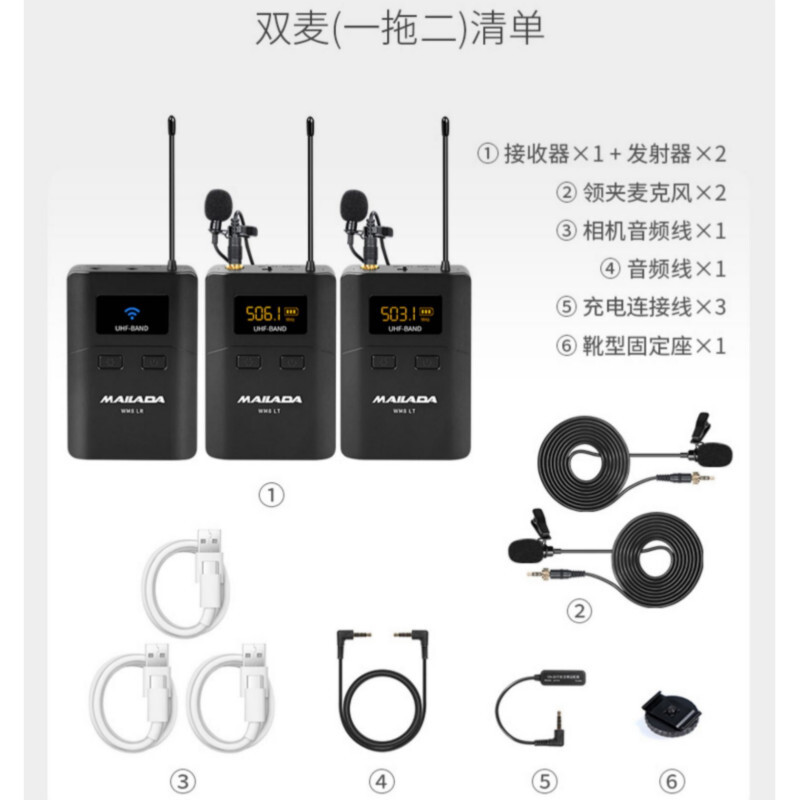麦拉达(mailada) WM8L小蜜蜂无线麦克风领夹单反手机直播无线话筒收音采访专业录音麦 WM8L一拖二款