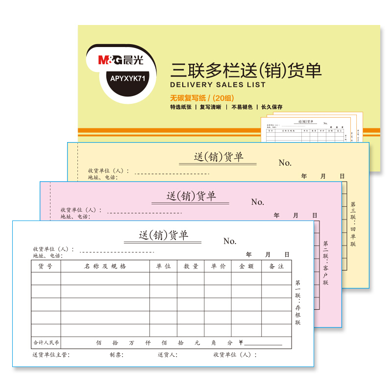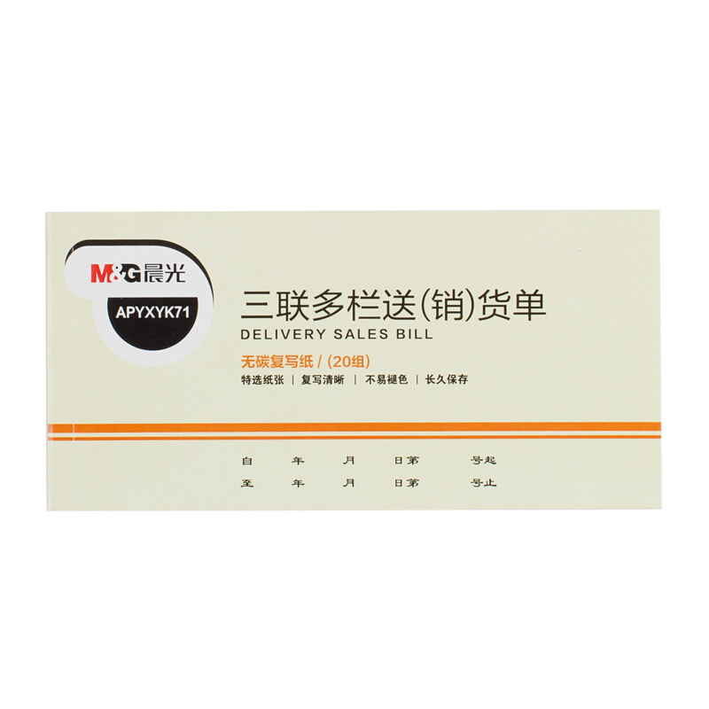 • 晨光APYXYK71 三联多栏送(销)货单 无碳复写纸 财务手写单 办公用品 10本装