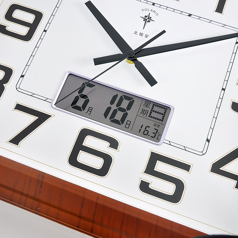 北极星(POLARIS)挂钟客厅静音钟表超大方形万年历石英钟经典简约日历时钟挂表19英寸6812木纹
