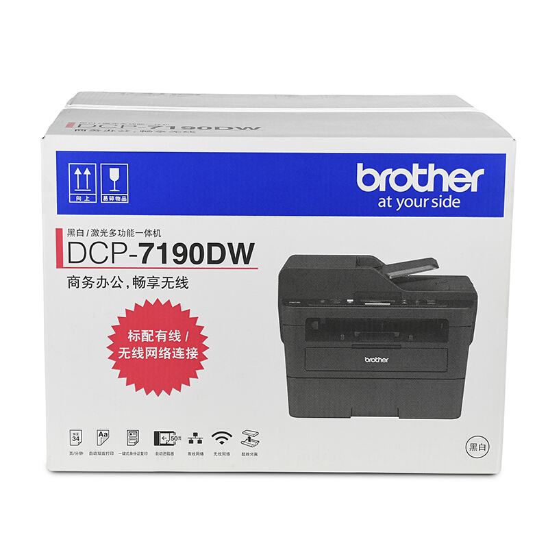 兄弟(brother)DCP-7190DW 黑白激光一体机(三合一 双面打印 有线&无线连接)