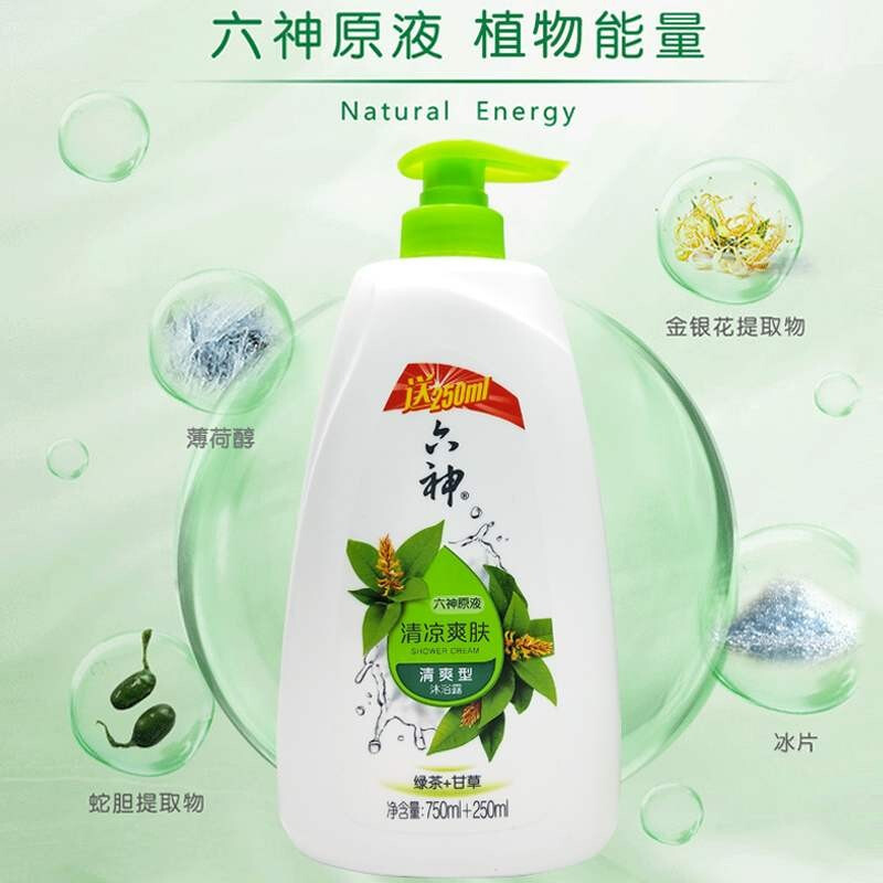 • 六神沐浴露 清凉爽肤绿茶甘草男女留香沐浴露乳家庭装 750ml+250ml