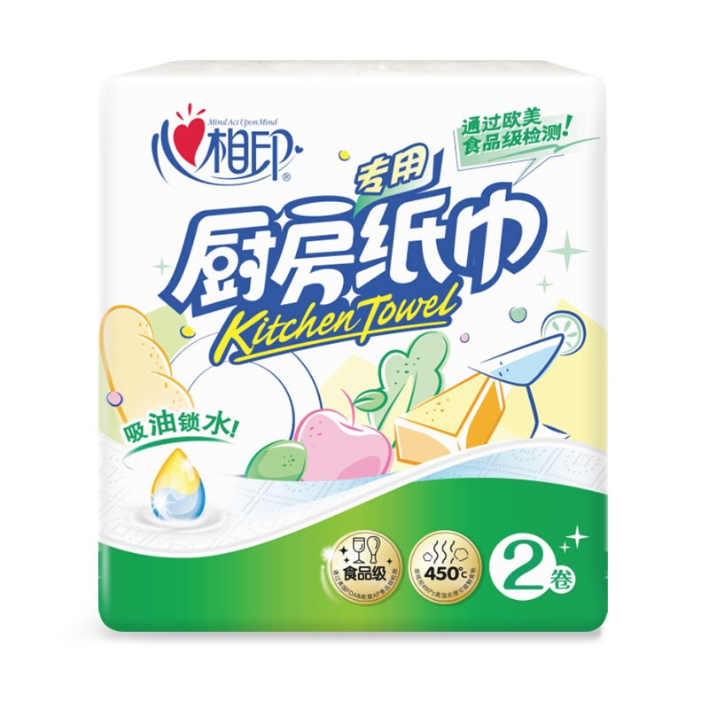 • 心相印 厨房用纸 吸水去油污专用清洁卷纸加厚擦手纸2卷*4提共8卷家用整箱装纸巾