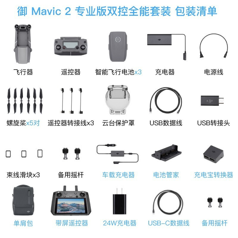 - 大疆(DJI) 无人机 御mavic2 pro/zoom专业变焦版无人机航拍可折叠 mavic 2 专业版(带屏控+全能配件包+随心换