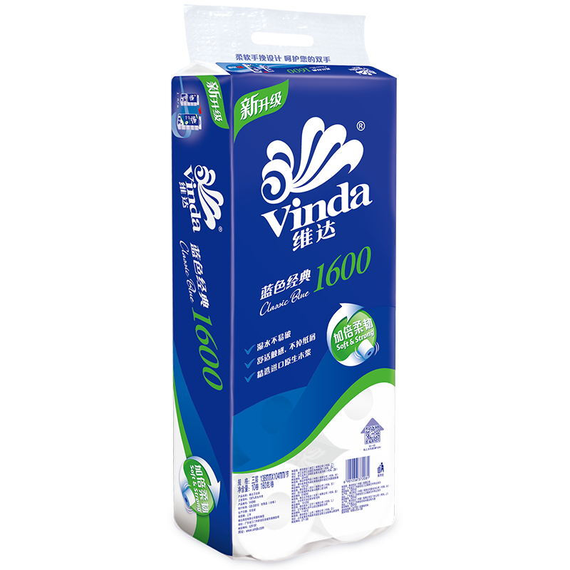 • 维达(Vinda) 卷纸 蓝色经典3层160g卫生纸巾*10卷