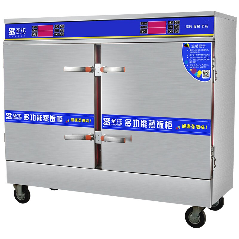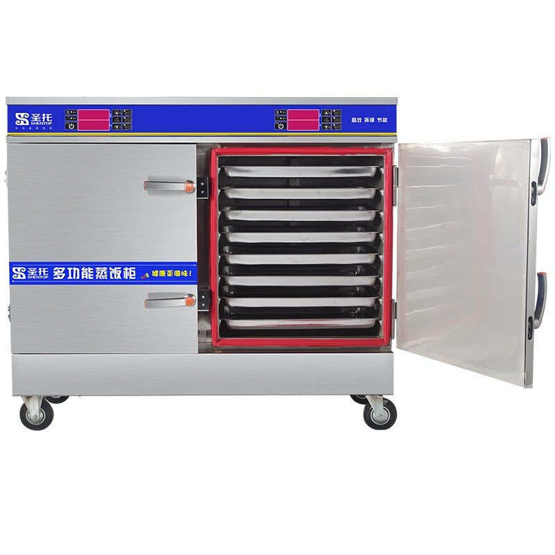 圣托(Shentop)蒸饭柜商用全自动 智能多功能饭店电蒸箱 8盘单门食堂蒸饭车 STZ-D0 【16盘】380V-18kW