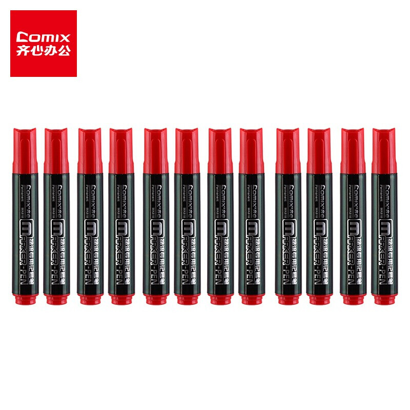 齐心(Comix)红色粗头物流油性记号笔大头笔2.0mm 12支/盒 办公文具 红色(12支装)