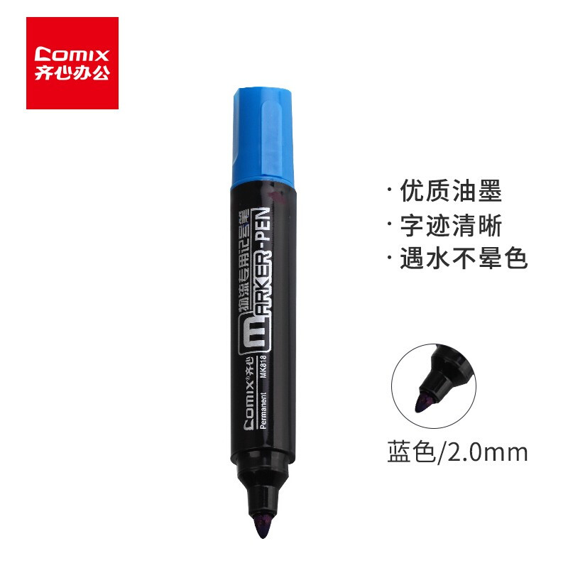 • 齐心MK818 蓝色粗头物流油性记号笔 大头笔2.0mm 12支/盒 蓝色