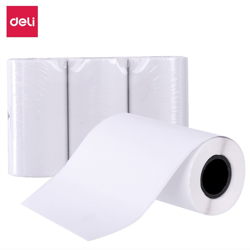 得力热敏打印纸相印宝专用彩纸照片纸错题整理彩色标签纸不干胶打印纸粘贴喵喵机打印纸 白色热敏不干胶纸 3.5m*3卷