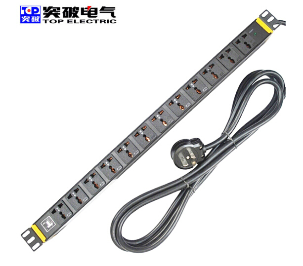 突破(TOP)27N01ES-0505机柜PDU插座 接线板 12位 10A万用孔 3米 16A国标插头