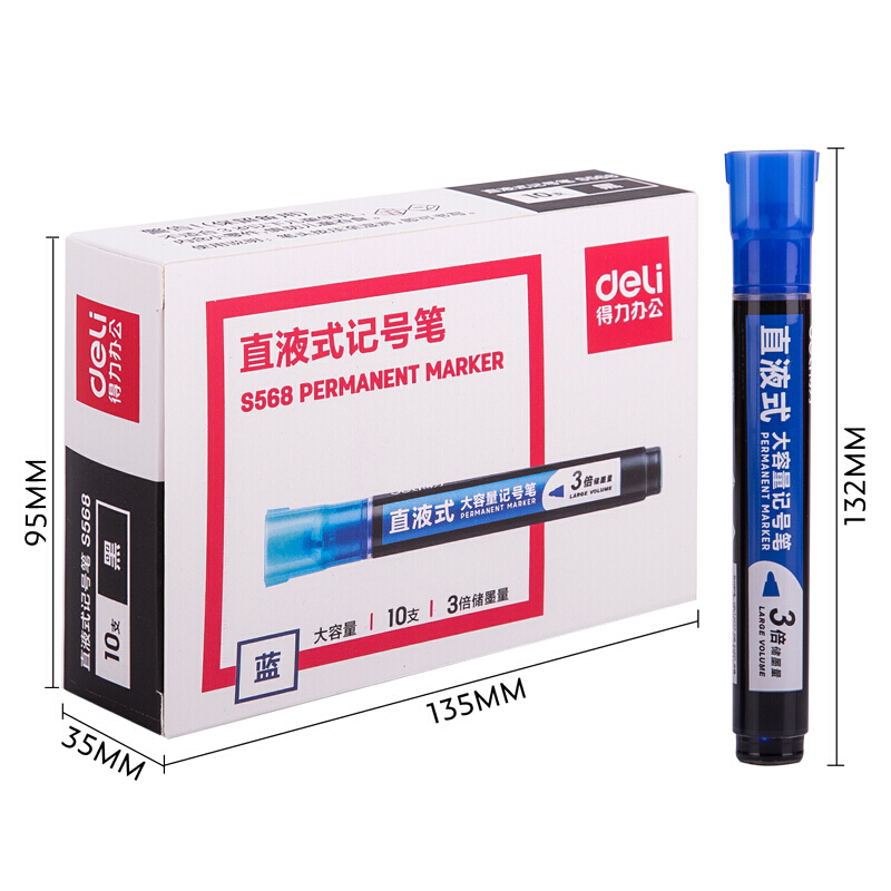 • 得力S568 记号笔粗 3倍大容量耐写物流快递笔 马克笔签到笔批发 蓝色 单支装