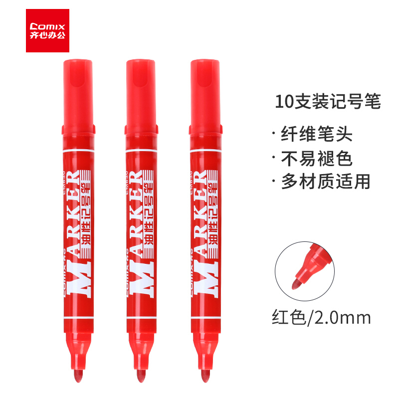 • 齐心(Comix)大粗头防水速干油性物流记号笔/大头笔/签名笔/马克笔 10支/盒 红色 EM830