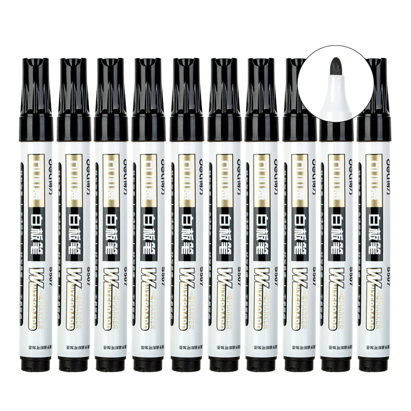 • 得力S507 可加墨白板笔 可擦易擦 10支黑 办公用品