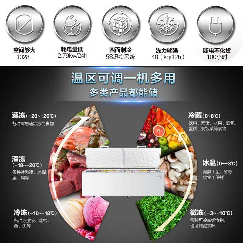 • 海尔 BC/BD-1028T 1028升 冰柜 大容量 商用冷柜 冷藏冷冻柜 大冷柜