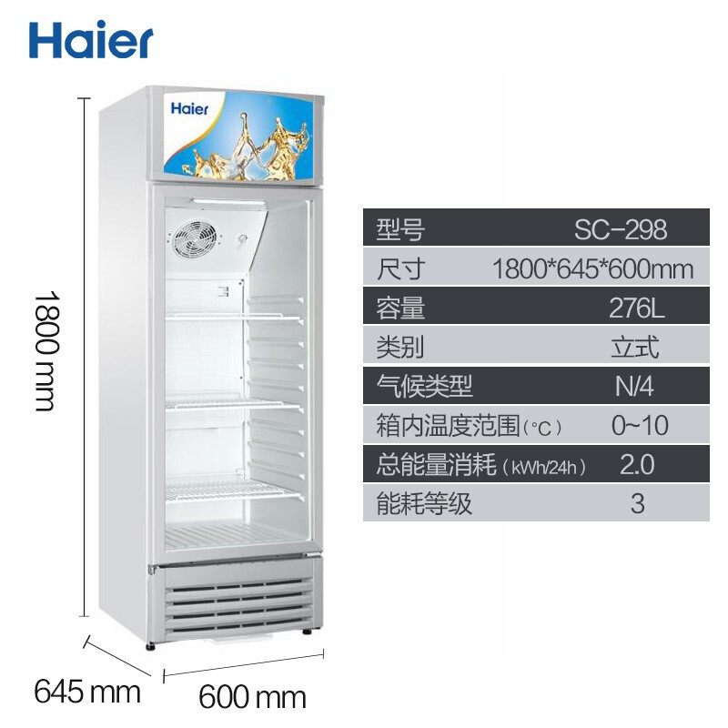 • 海尔冷柜SC-238 商流商用立式展示柜商用冷藏柜360度循环制冷双层钢化