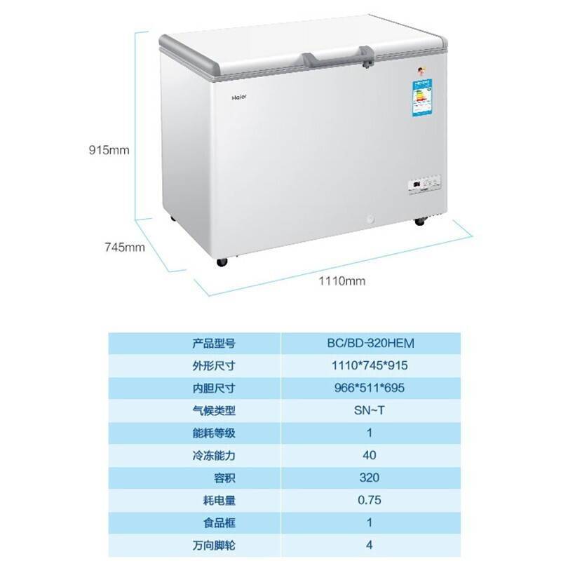 • 海尔(Haier)冰柜320升商用大容量家用冷冻柜速冻冷藏冷冻切换一级能效顶配-40度低温单温柜脚轮 320升 电子控温 BC/BD-320HEM 冷柜