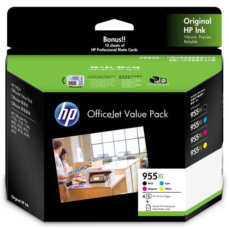 - 惠普 955XL 墨盒 适用8210 8710 8720 7740 7720 7730 955XL四色套装(含10张无光泽卡片纸)