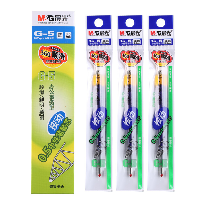 • 晨光G-5 蓝色0.5mm按动子弹头中性笔芯 签字笔替芯 水笔芯20支/盒
