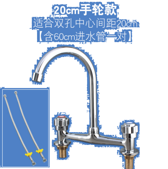 • 混合龙头立式大孔距20公分厨房船用 【20cm】手轮款+进水管