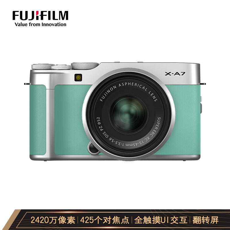 富士(FUJIFILM)X-A7/XA7 微单相机 套机 薄荷绿(15-45mm镜头 ) 2420万像素 自拍美颜vlog相机 蓝牙WIFI