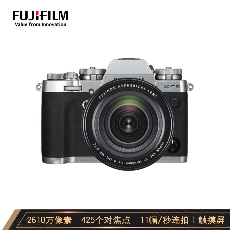 富士(FUJIFILM)X-T3/XT3 微单相机 套机 银色(16-80mm镜头 ) 2610万像素 翻折触摸屏 4K视频