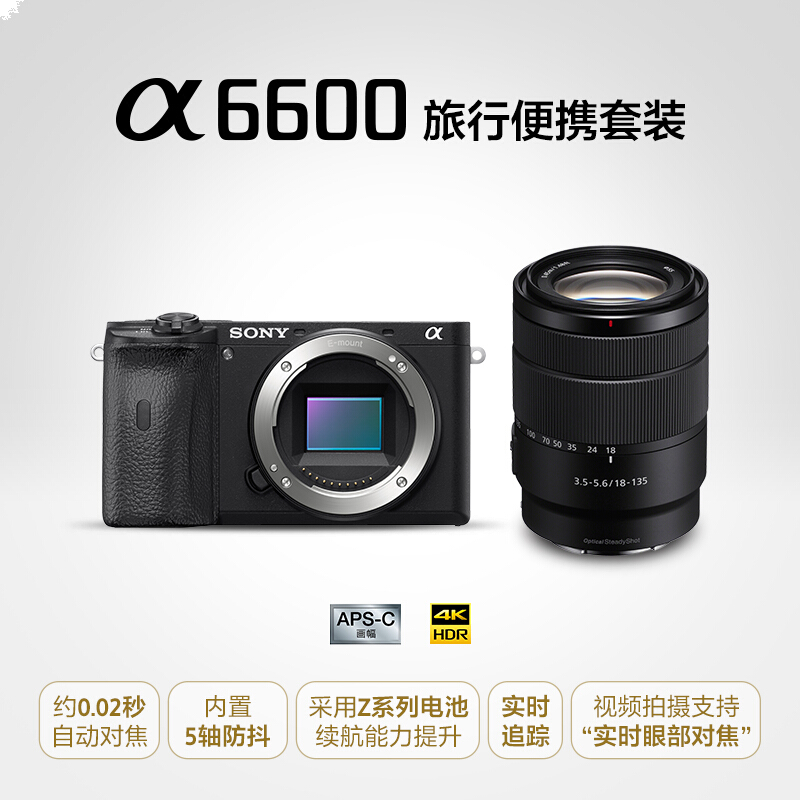 - 索尼(SONY)Alpha 6600M APS-C画幅微单数码相机 旅行便携套装 黑色 (ILCE-6600M/A6600M)