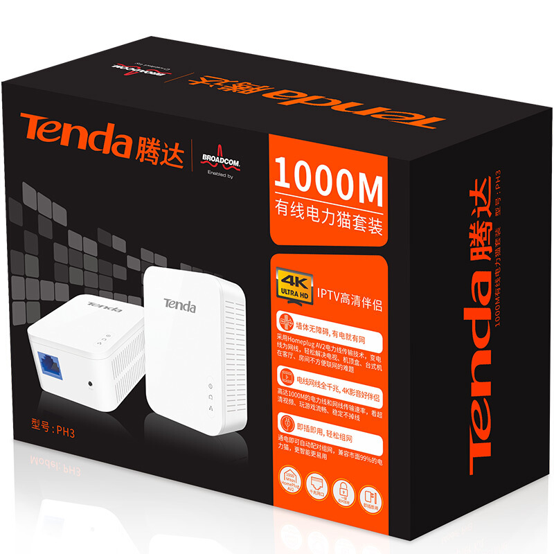 • 腾达PH3 1000M 千兆有线电力猫套装 穿墙宝 支持IPTV 搭配无线路由器使用