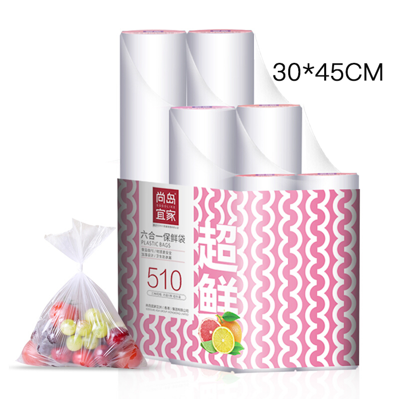 • 30x45大号保鲜袋100只 背带型塑料保险食品袋子厨房超市一次性用品