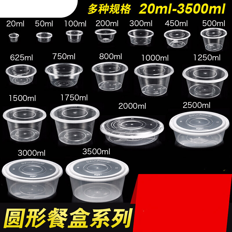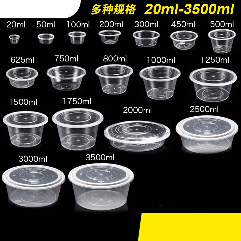 • 一次性打包盒塑料餐盒圆形ML打包碗快餐盒加厚塑料碗透明便当 四盎司100ML酱料盒1000套(含盖)