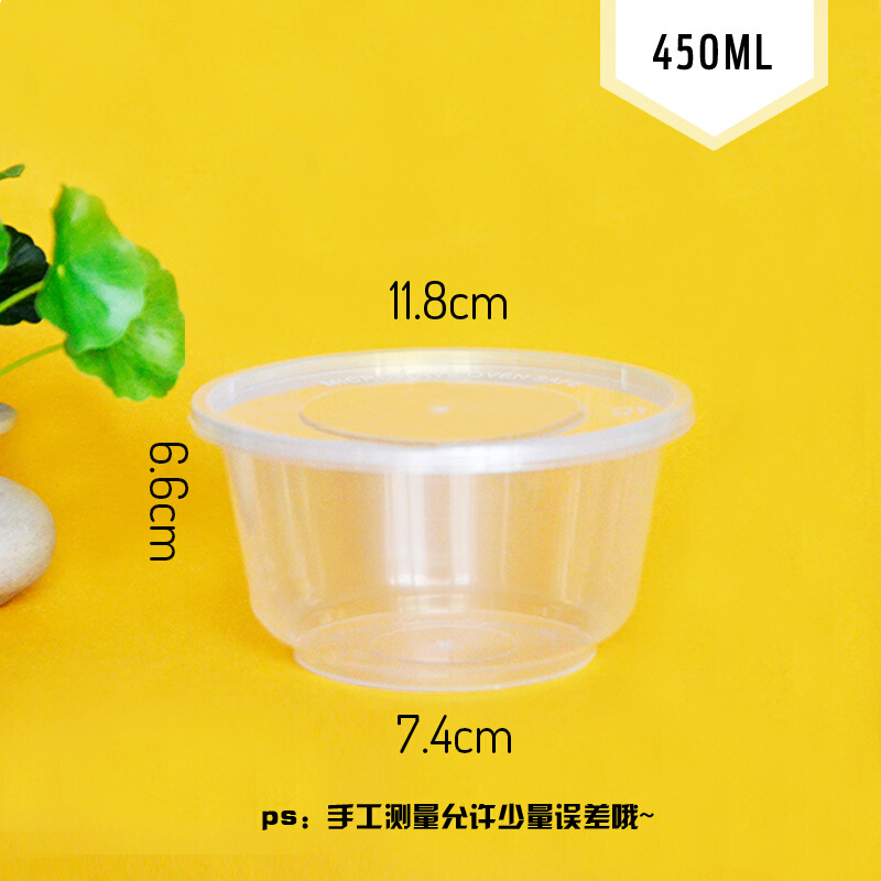 • 一次性餐盒透明塑料盒打包盒快餐加厚外卖汤碗带盖 450ml圆透明加厚(300套带盖)