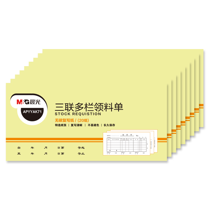 晨光(M&G)文具54K三联单栏收据 无碳复写收款收据单 财务手写单 办公用品 10本装APYXLK71