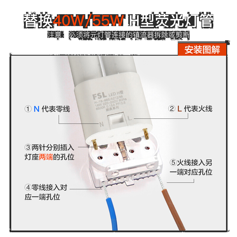 • 佛山照明(FSL)H灯管LED灯板吸顶灯节能灯管 可替换四针H荧光灯管 18瓦白光